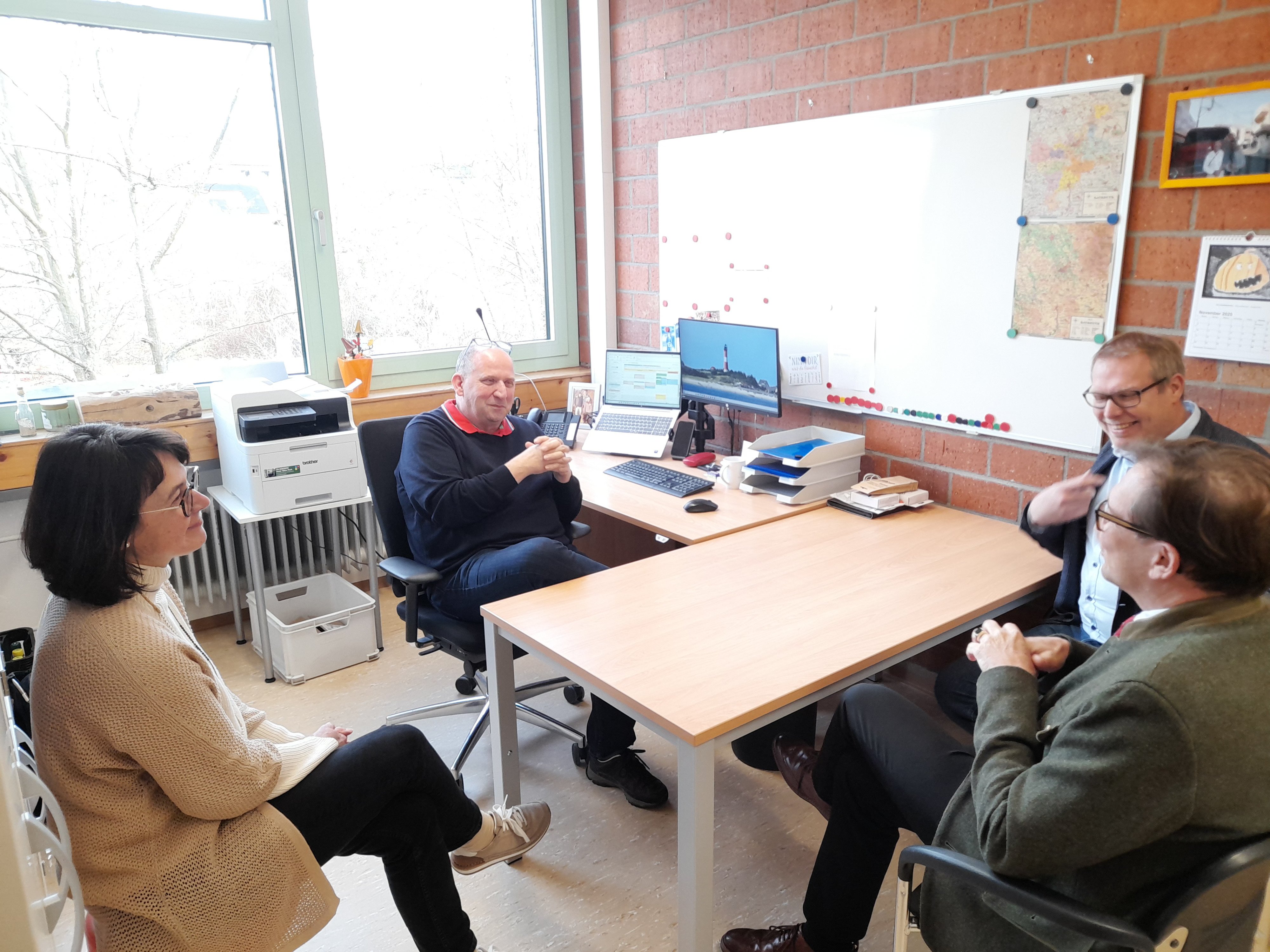 MdL Franc Dierl (rechts) im Gespräch mit dem Sonderschulrektor der Dr.-Dittrich-Schule in Pegnitz Steffen Blank (2. von links), der Konrektorin Petra Grün und dem Stadtrat der Stadt Pegnitz Stefan Krieg.